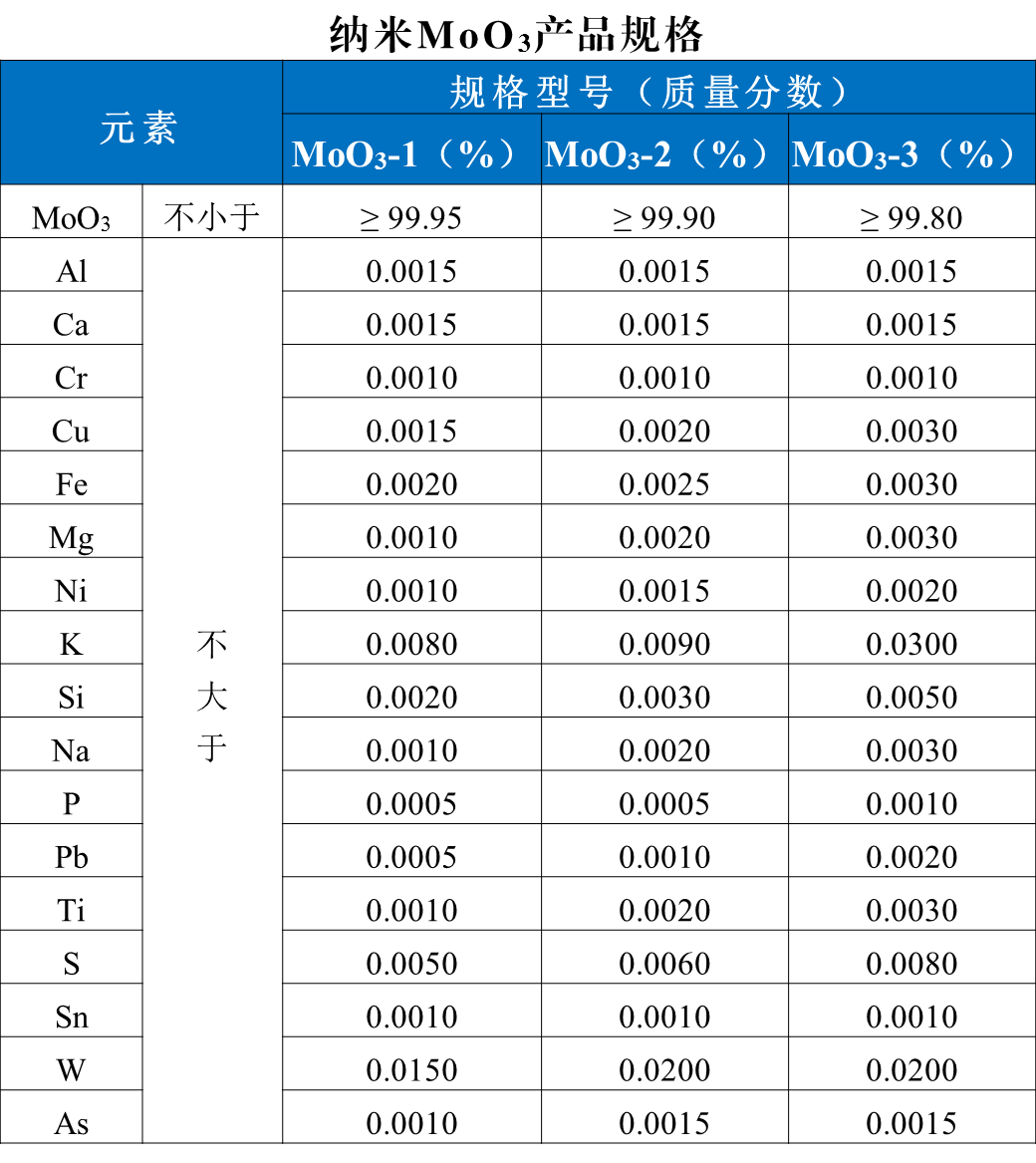 中文名稱:納米三氧化鉬、納米氧化鉬 (VI)
