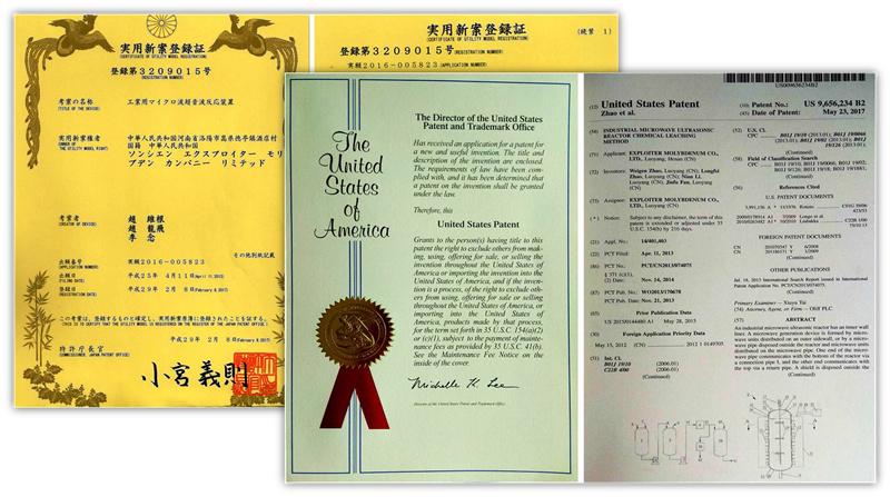 自成立以來,公司完成了高純二硫化鉬產(chǎn)品升級(jí)技術(shù)研發(fā)、納米二硫化鉬制備項(xiàng)目、納米三氧化鉬制備項(xiàng)目、真空分解二硫化鉬生產(chǎn)金屬鉬粉項(xiàng)目、低品位鎢精礦制備鎢鉬鐵合金項(xiàng)目、錸的綜合回收利用項(xiàng)目等一系列重大科研項(xiàng)目,累計(jì)完成科技成果轉(zhuǎn)化20余項(xiàng),先后獲得國內(nèi)授權(quán)專利30余項(xiàng),其中,發(fā)明專利16項(xiàng),實(shí)用新型專利22項(xiàng);國外授權(quán)專利2項(xiàng),包括美國授權(quán)發(fā)明專利1項(xiàng)、日本授權(quán)實(shí)用新型專利1項(xiàng)。部分專利如下: